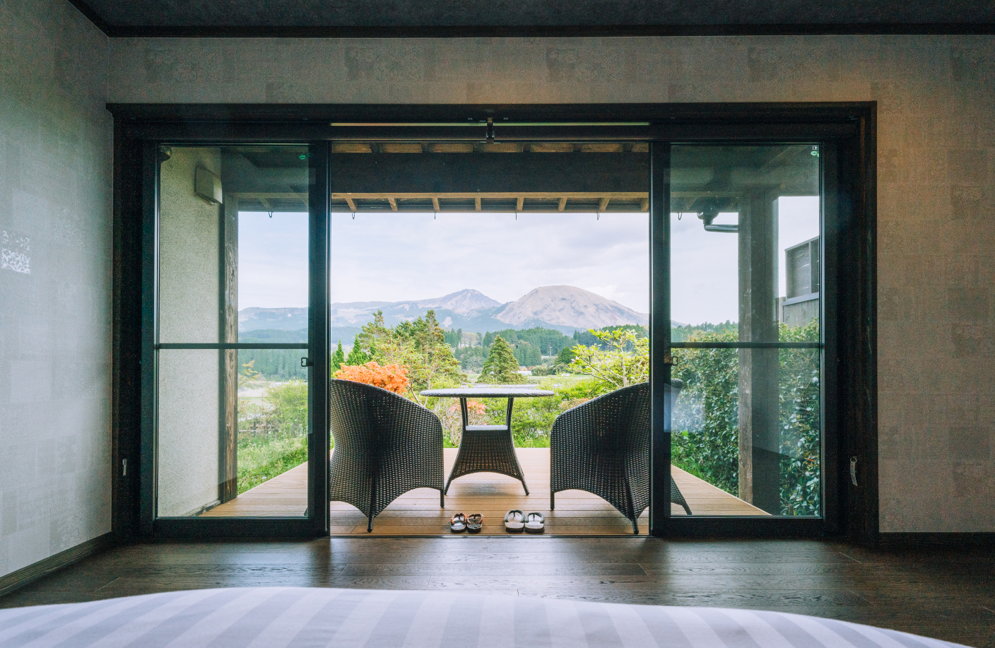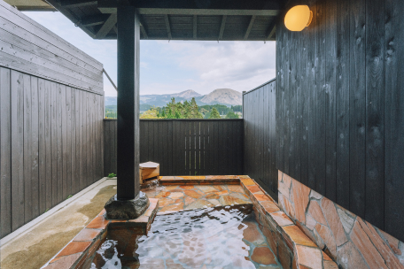 阿蘇の山々を展望できる露天風呂と内湯付き離れ客室